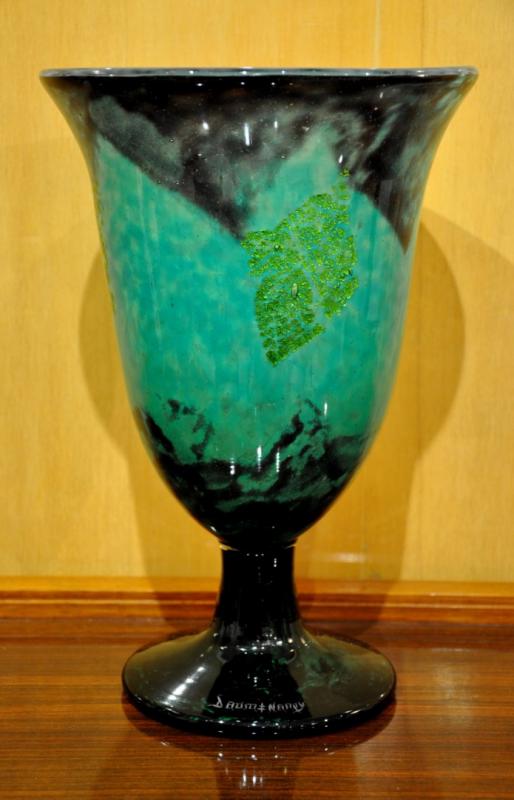 DAUM NANCY VASE VERRE EMERAUDE INCLUSIONS OR 1920-1925
