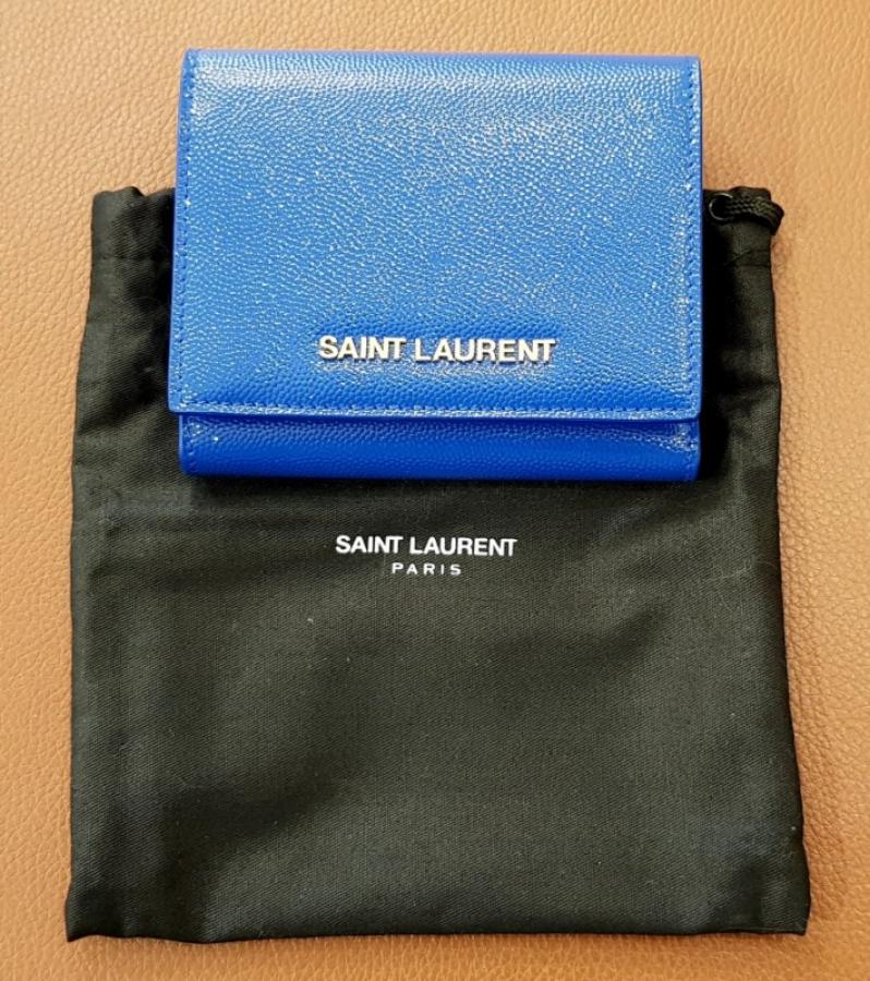 YVES SAINT LAURENT PORTE FEUILLE PORTE CARTE PORTE MONNAIE CUIR BLEU