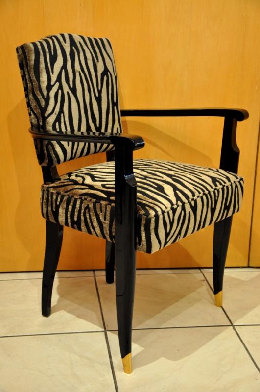 Rare pair of armchairs in black lacquer and gilded bronze ART DECO period 1930
