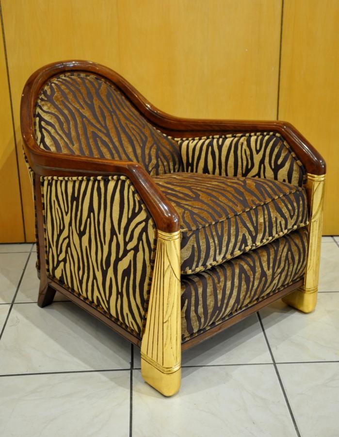 Exceptional Pair of beautiful and important armchairs created by Léon Jallot in 1935 for the prestigious Transatlantic Liner ' Le Normandie ' in walnut , front legs carved and gilded with the leaf.