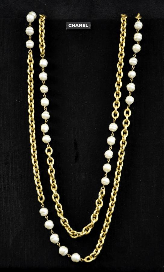 Chanel Paris Gold metal necklace & double-stranded baroque beads