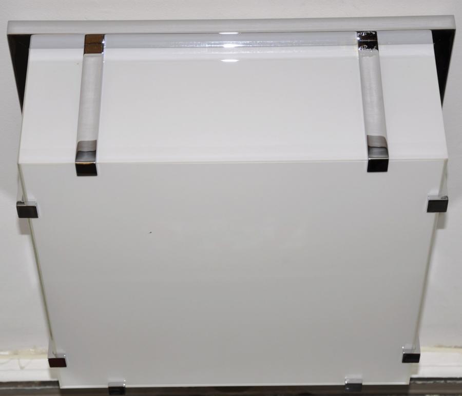 Rare opaline glass tile ceiling light, chromed bronze frame with 4 lights. Model 165 Ter of the House Perzel