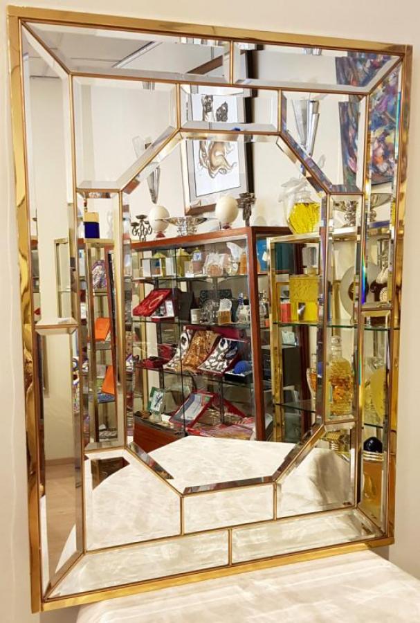 Miroir à parcloses. Monture en bronze doré et miroirs à pans coupés.
