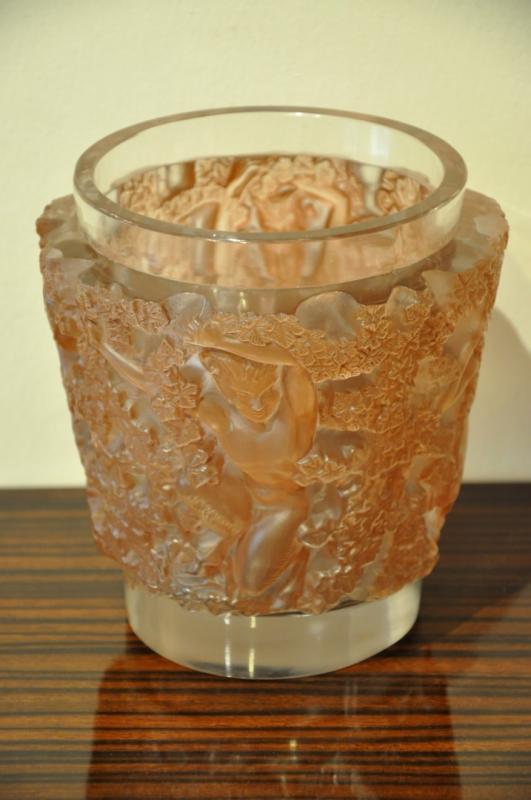 LALIQUE FRANCE VASE BACCHUS PATINE SEPIA 1950