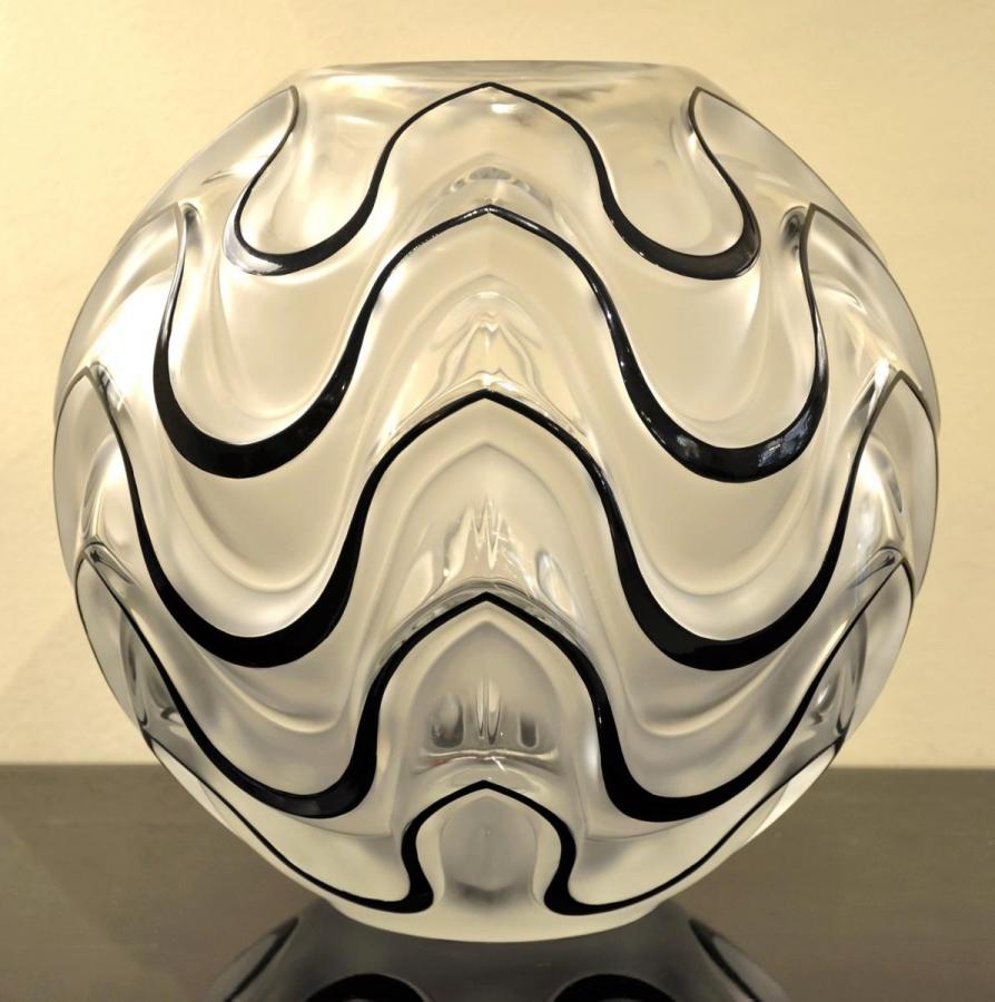 Important et rare VASE en cristal émaillé noir modèle VIBRATIONS série limité à 999 exemplaires.