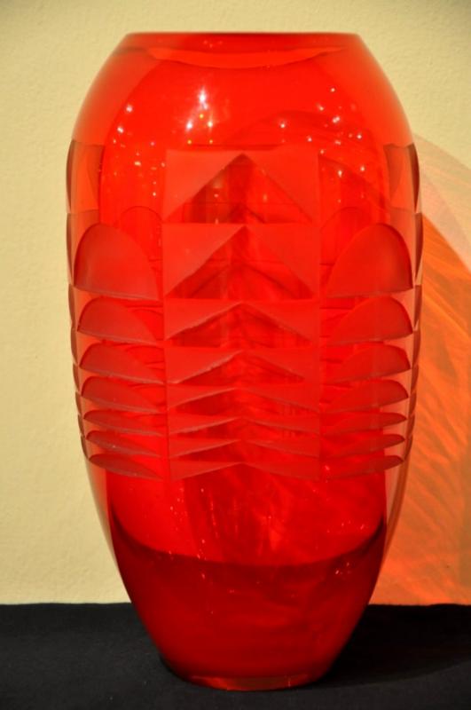 LEGRAS Rare vase en verre rouge rubis à motifs géométriques d'époque ART DECO 1925-1930.