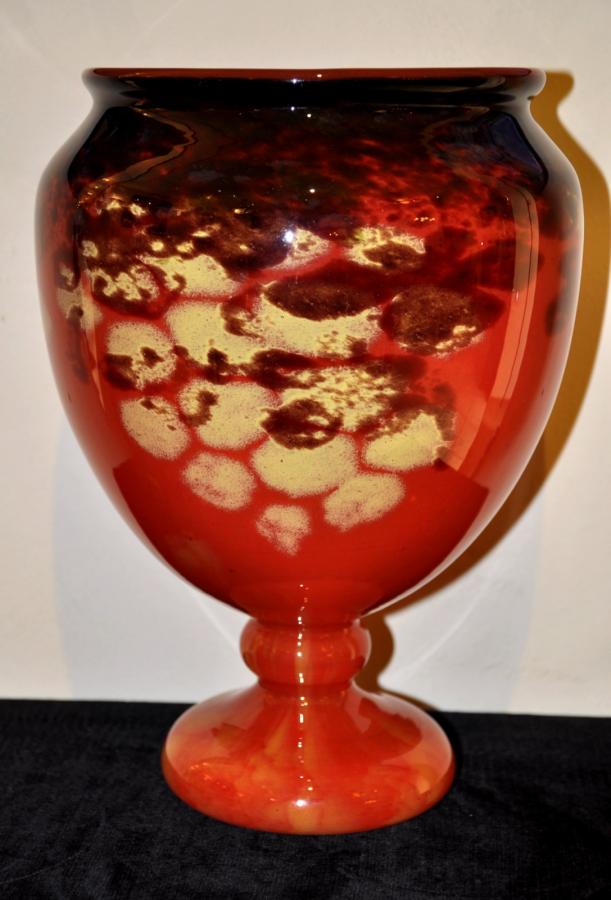 Important Vase modèle ' JADES ' en verre poudré jaune , orange , rouge entre 3 couches de verre incolore . Signé sur le pied SCHNEIDER
